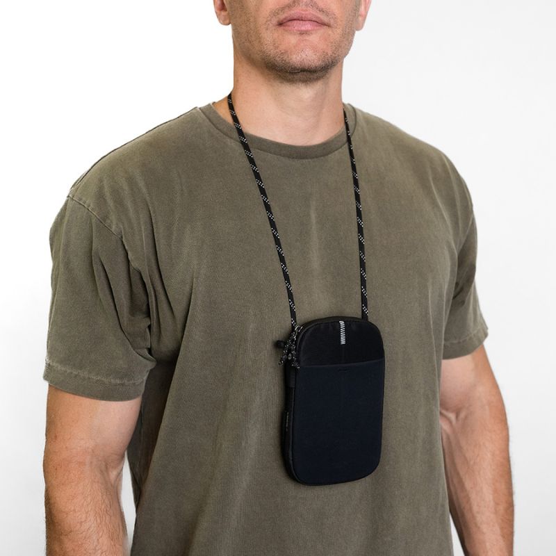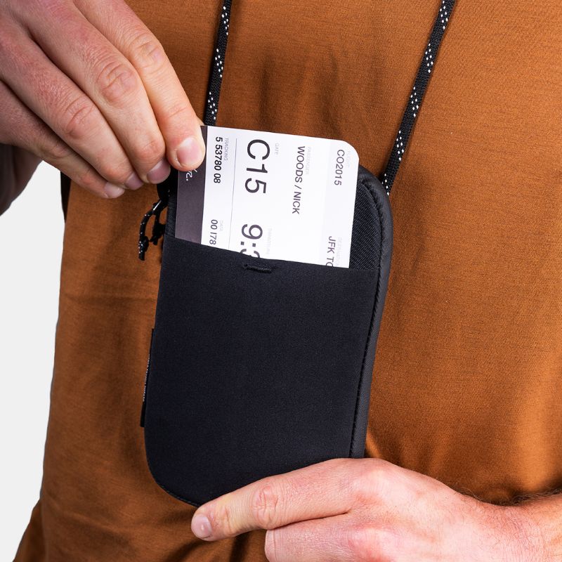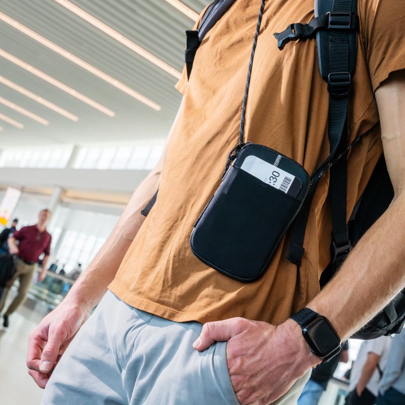 -Stowable, adjustable lanyard — wallet, neck, or crossbody carry