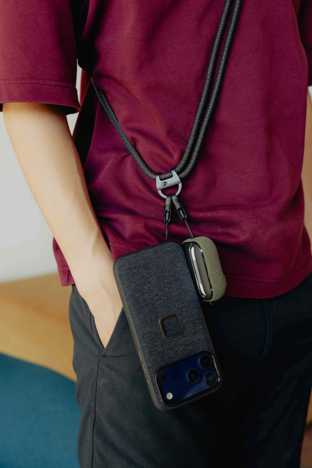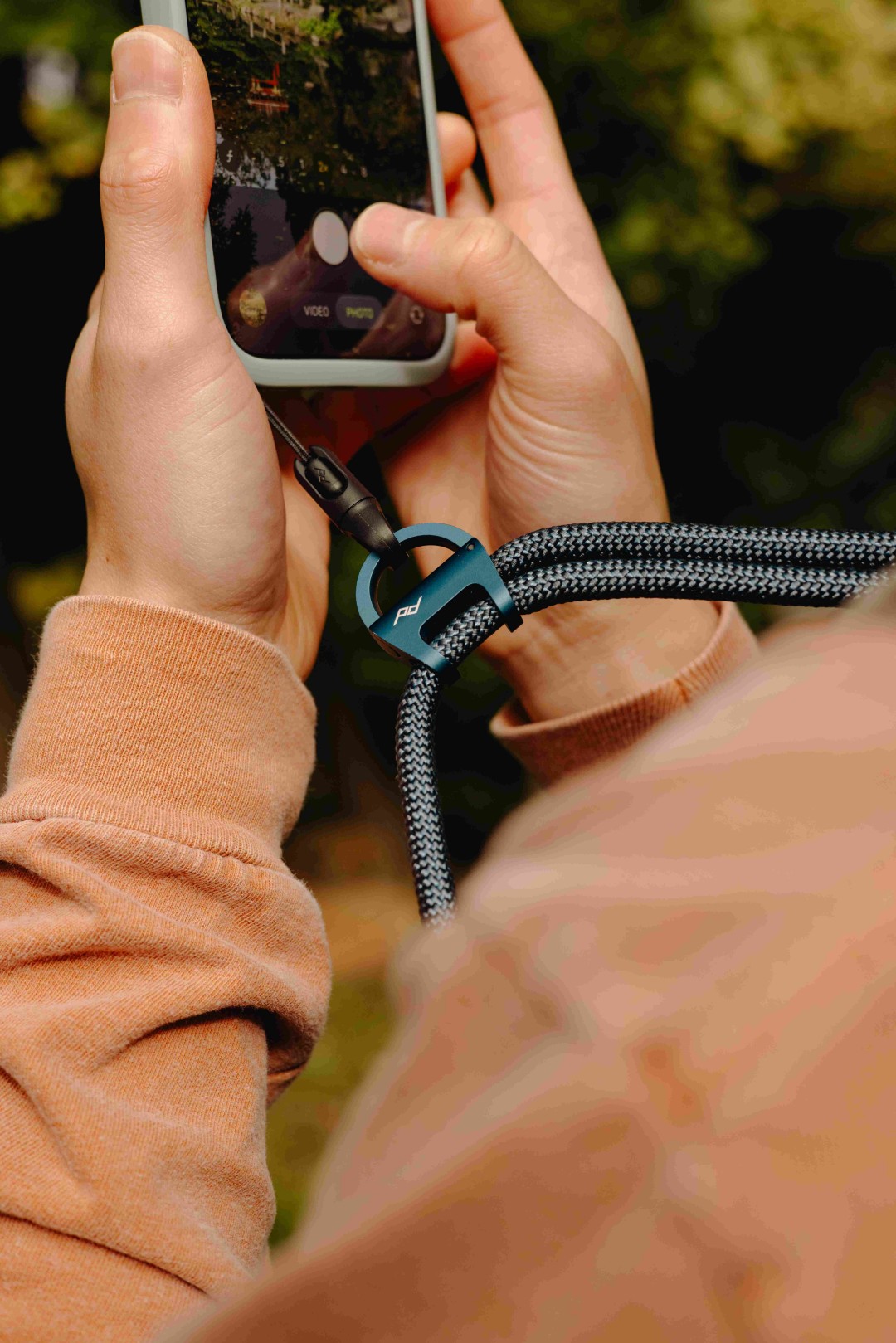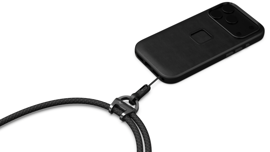 The most capable phone strap on the planet, the Mobile Crossbody Multi-Strap carries your phone, keys, and other everyday essentials (including a small point-and-shoot camera) for the perfect balance of security and convenience, all in a beautifully designed low-profile form. Thanks to the brilliantly intuitive Micro Anchor™ connection system, you can attach/remove items with ease, carry them securely, and avoid twisting/tangling. A custom machined/anodized aluminum carabiner holds up to 3 Micro Anchors™ and locks shut for total peace of mind. The adjustable, internally-developed basket-woven nylon/poly rope strikes the optimal balance of strength, padding, and stretch. Works with nearly any phone case thanks to an included universal adapter, and integrates seamlessly with the built-in strap connection points on Peak Design cases and Apple iPhone cases (17 and onwards). Also works with any small, lightweight point-and-shoot camera with a strap/lanyard connection point.