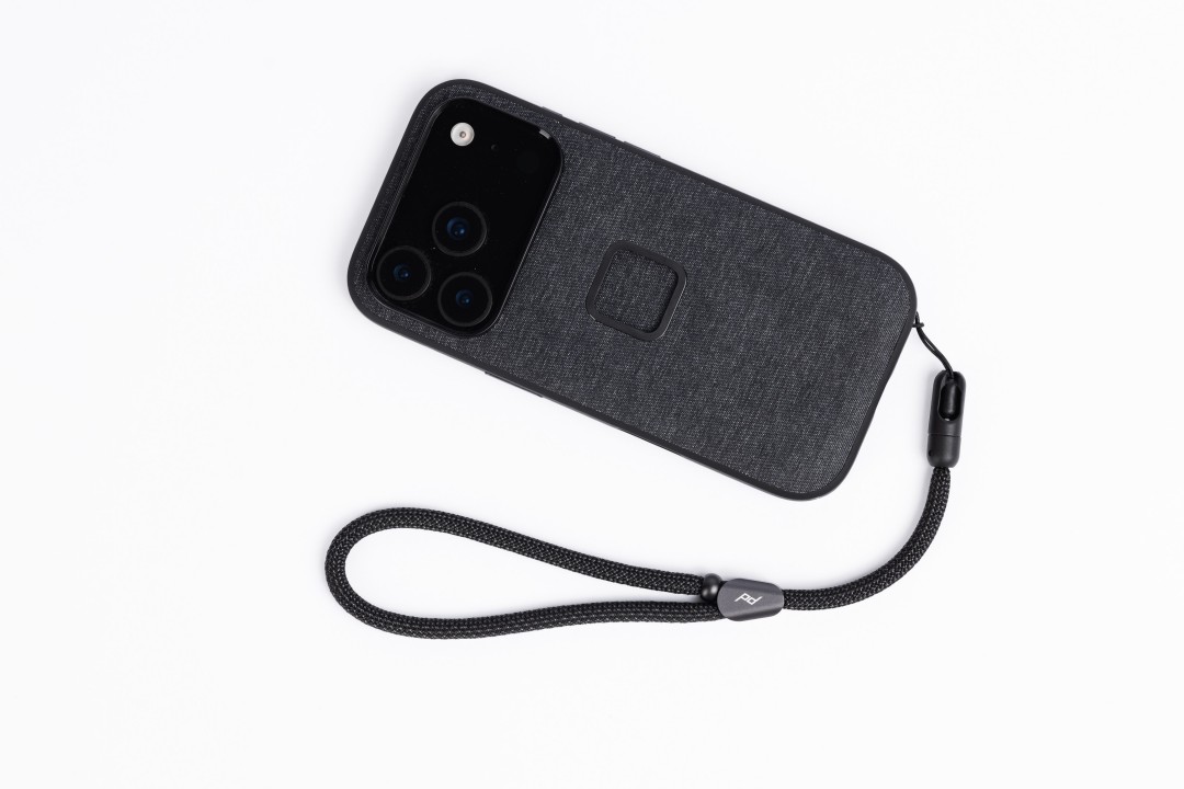 Mobile Cuff gives you simple, durable, and elegantly low-profile drop protection for your phone, point-and-shoot camera, or any small device with a strap/lanyard connection point. Thanks to the brilliantly intuitive Micro Anchor™ connection system, you can attach/remove your phone/camera with ease, carry it securely, and avoid twisting/tangling. The internally-developed basket-woven nylon/poly rope strikes the optimal balance of strength, padding, and stretch, and in the event of an accidental drop the rope cinches onto your wrist. An aluminum stopper hardware lets you set minimum loop length. Integrates seamlessly with the built-in strap connection points on Peak Design cases and Apple iPhone cases (17 and onwards). Also works with any point-and-shoot camera or small device with a strap/lanyard connection point. An included universal adapter enables compatibility with almost any 3rd party phone model/case.