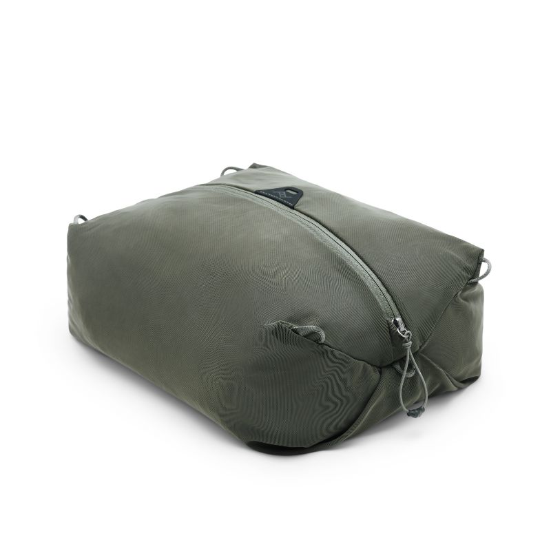 But don't go around calling these cubes simple—thoughtful features are abound. Choose from 2 fabrics: our weatherproof Terra Shell™ 50D material, and our see-through nylon stretch mesh. Terra Shell™ cubes have taped seams and weatherproof UltraZips™ for enhanced water and tear resistance, while the stretch mesh can expand to double the max volume, and is also ideal for things that need to breathe. Turn your cube into an ultralight sling by attaching an adjustable carry strap or PD camera strap (both sold separately) to the Cord Hook™ carry loops. Or mount your cube externally on any Peak Design bag via 2 external carry strap pass-throughs—a whole new dimension to modular organization. When not in use, Ultralight Packing Cubes fold totally flat and can be rolled up and cinched with the elastic zip pull cord. Keep a few of them on hand in your pocket or bag—you'll never stop finding uses for them.